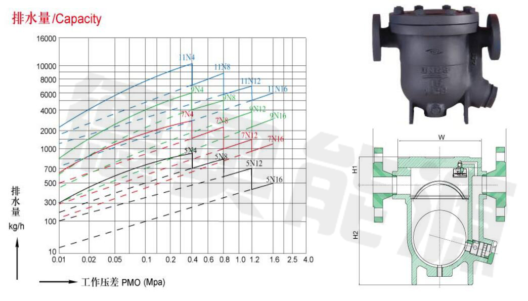 適用于大排量,連續(xù)疏水場合,自動排氣,法蘭連接,允許背壓度≥90%。