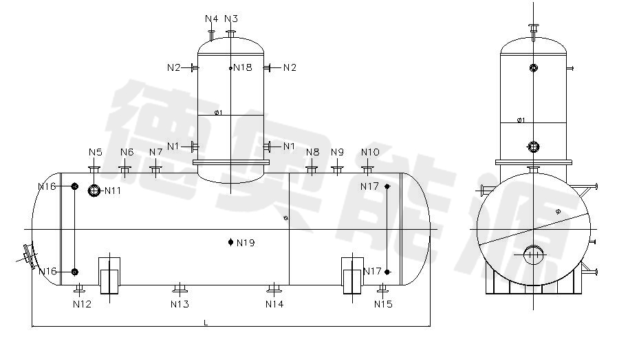 其中: DRC為低位布置高效多功能熱力除氧器產(chǎn)品代號