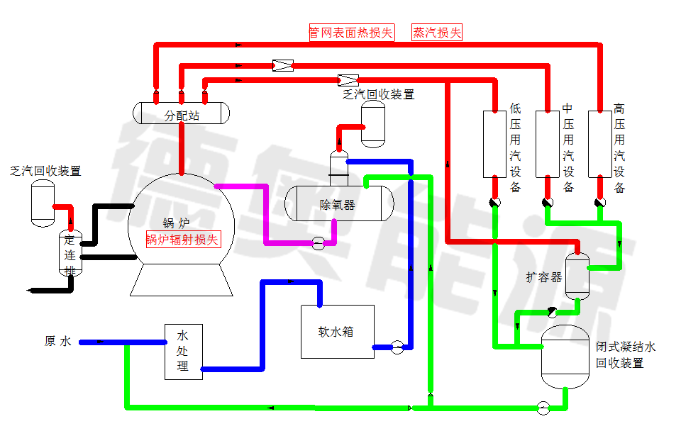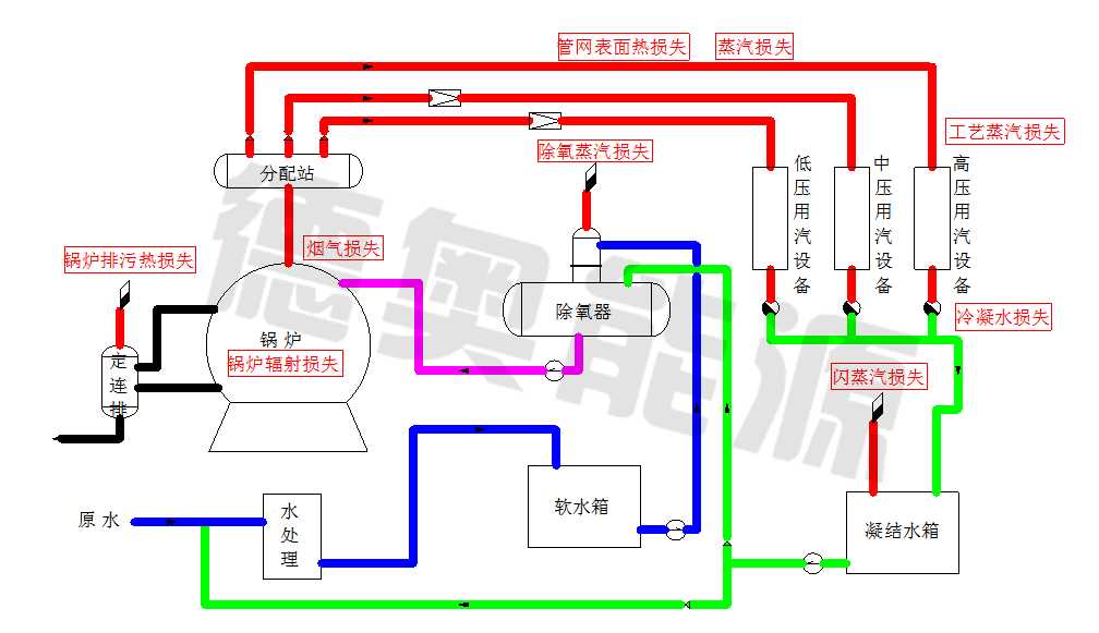 整個(gè)蒸汽熱力系統(tǒng)的熱量損失見圖一所示