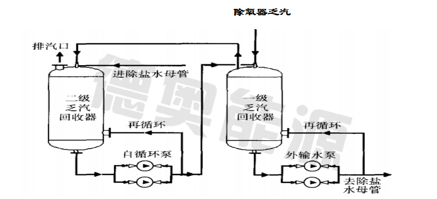 乏汽回收按乏汽的排放壓力和乏汽的成份可分為:有壓潔凈乏汽回收、有壓含不凝氣乏汽回收、有壓污染乏汽回收、無壓潔凈乏汽回收、無壓含不凝氣乏汽回收和無壓污染乏汽回收。除氧器乏汽為含有氣體雜質(zhì)的無壓廢汽,排放壓力很低,輸送能力很差,無法直接利用。